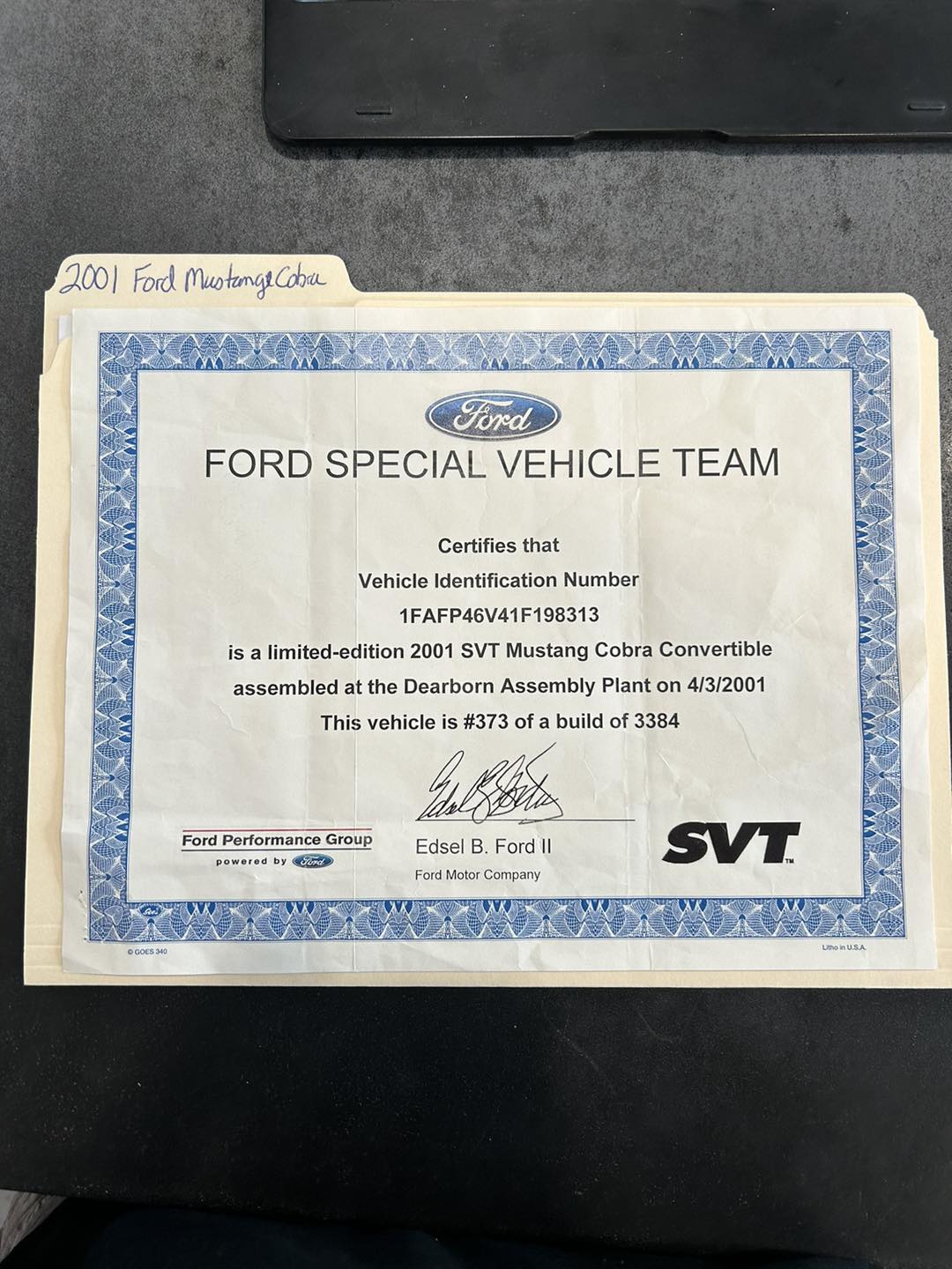 2001 Ford Mustang Cobra Convertible Limited Edition with a 4.6 liter 32 valve V-8 motor